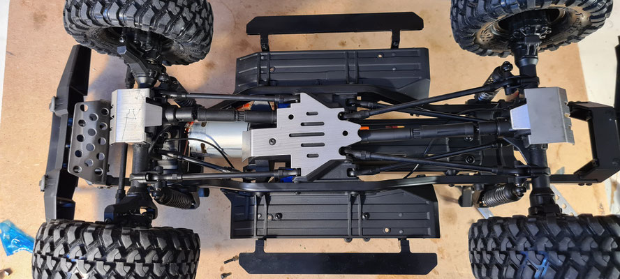 Danach kam der Unterbodenschutz dran... Die Getriebe vom Traxxas TRX-4 Defender werden damit gut geschützt.